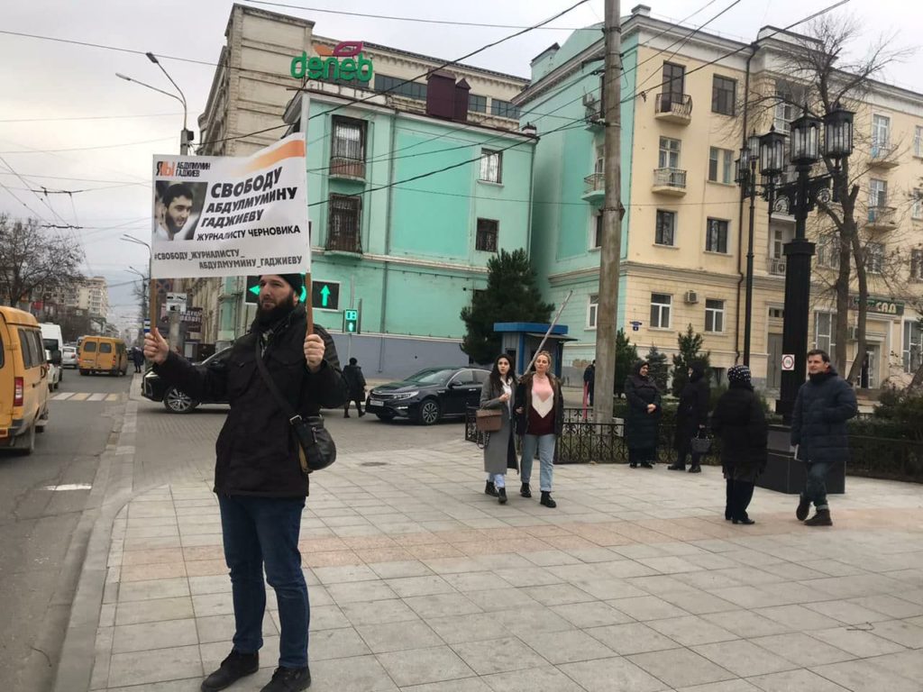 Каждый понедельник на протяжении всего года коллеги и друзья журналиста Абдулмумина Гаджиева выходят на пикеты в Дагестане . Фото: «Черновик»